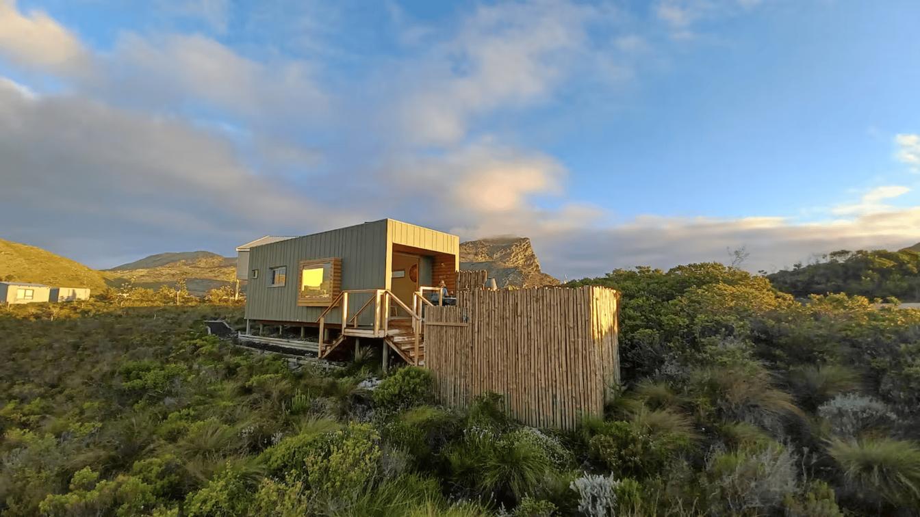 Full view of cabin from a distance