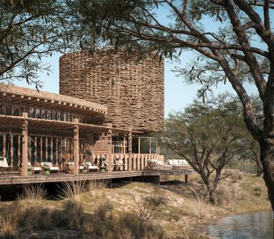 Shisaka Camp means “nest” as each suite will have its own skybed / sleepout to capture views above the treeline. Natural stone and large wooden decks elevated to be merge into the Tamboti thicket on the banks of the Timbavati.