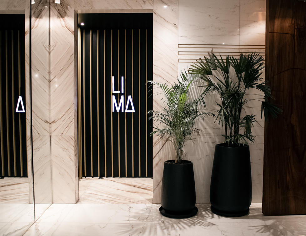 Art nouveau door and Cremo Delicatto marble in florr and walls