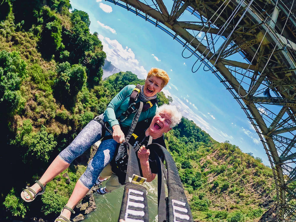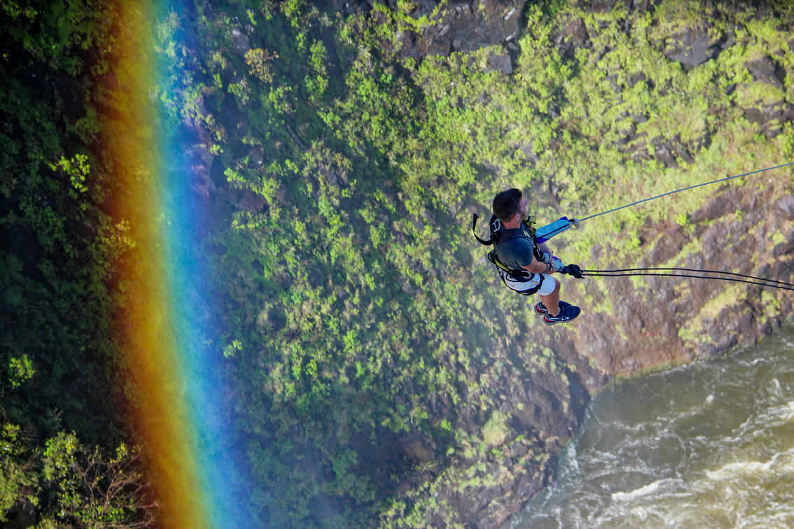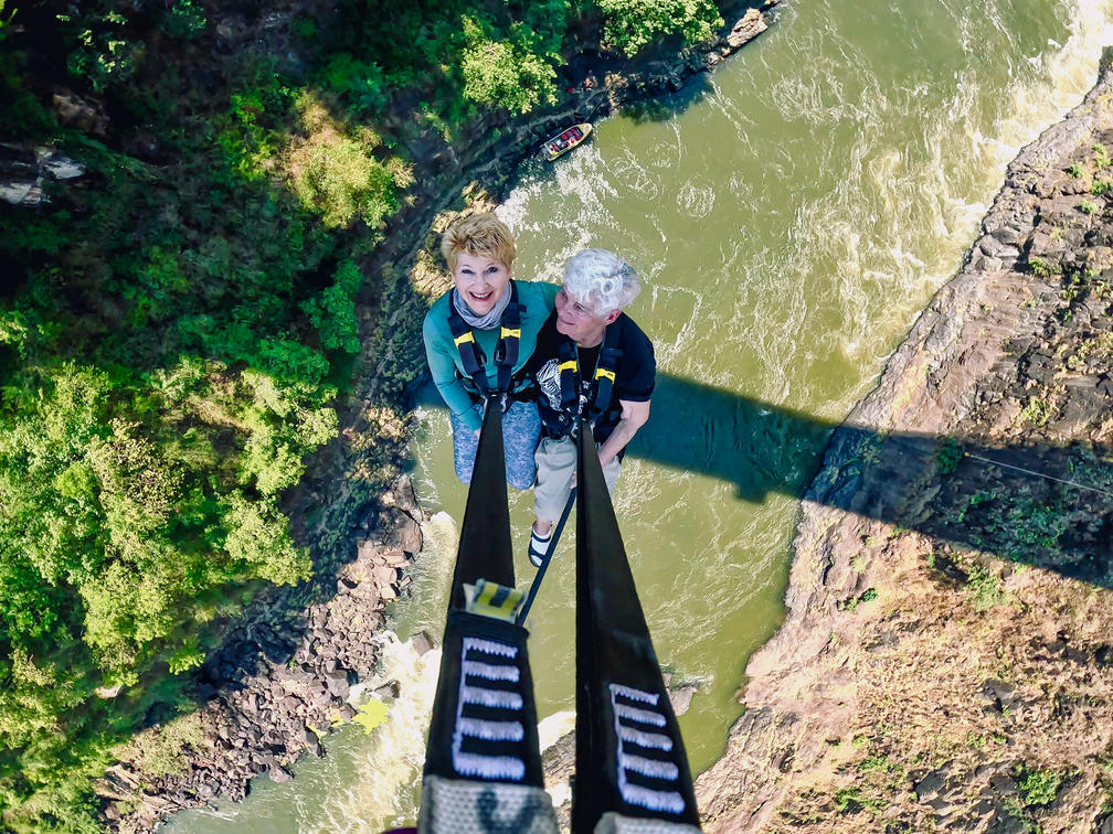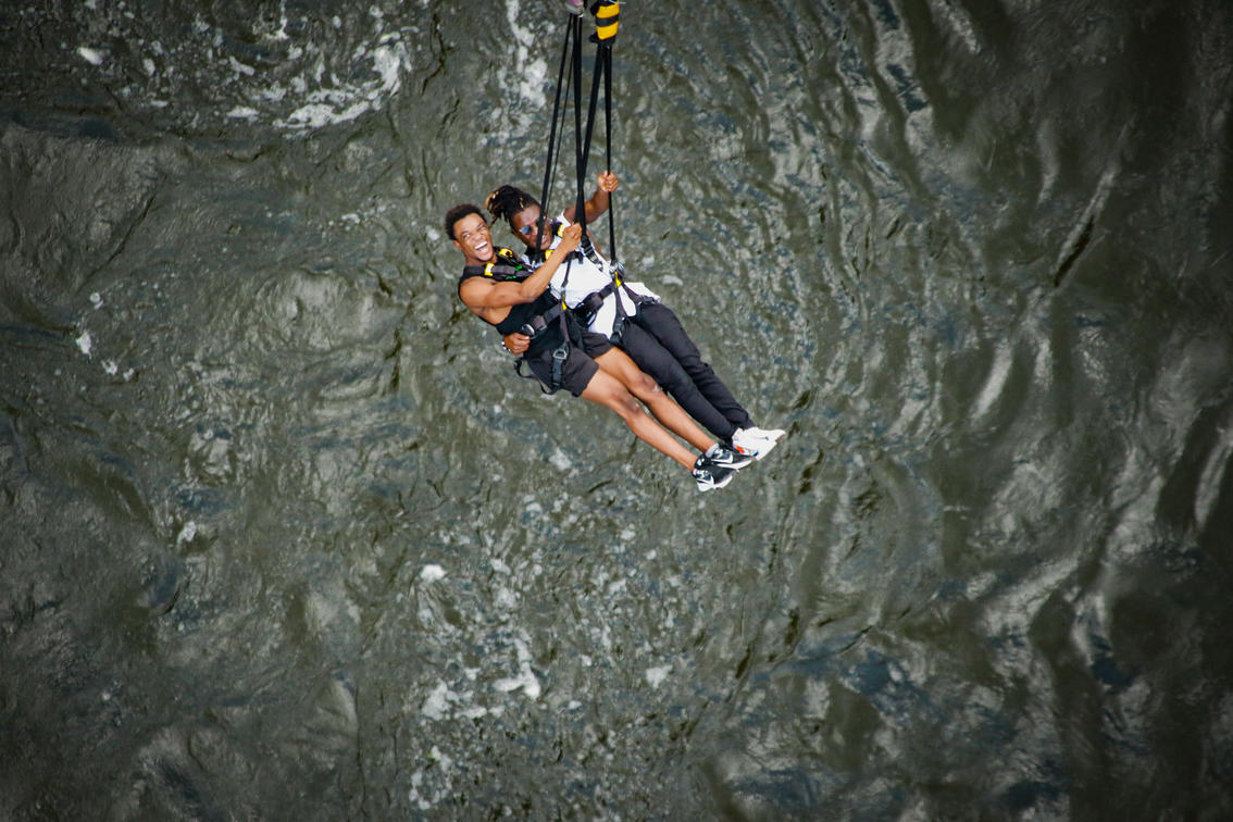 Step off the Victoria Falls Bridge into the Batoka Gorge over the mighty Zambezi River in an upright position for an 80 metre freefall then become a human pendulum as you swing in a huge arc with the cascading waterfall rumbling by your side. If you do not want to step into the void alone, take a partner with you and scream together as the rush of adrenalin surges through your body.