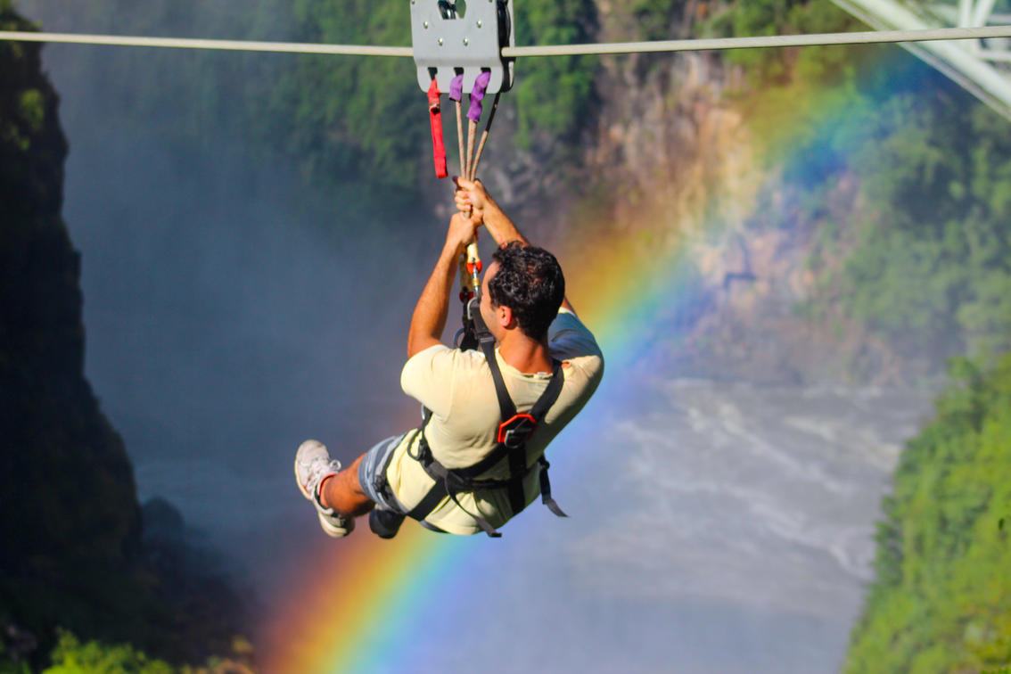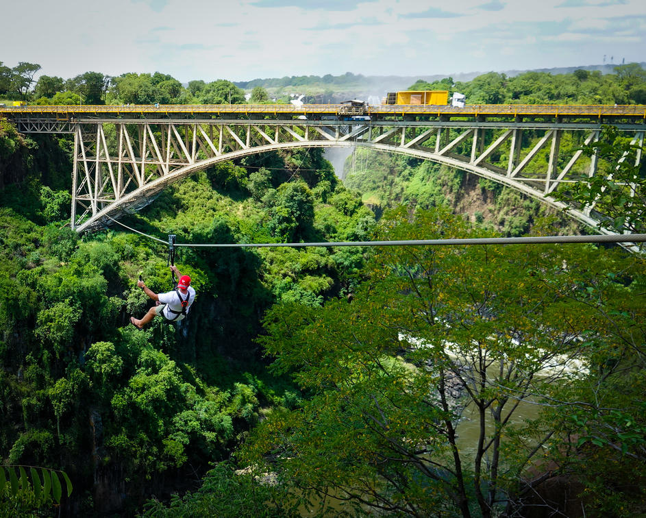 The Bridge Slide is exciting and mildly adventurous but friendly for all ages from six years and up – either alone or with a friend. Beginning from a platform on the Zambian edge, the zipline glides 300 metres over the rapids in the Batoka Gorge below affording incomparable views of the Victoria Falls before gently coming to rest on the Zimbabwean side of the bridge.
