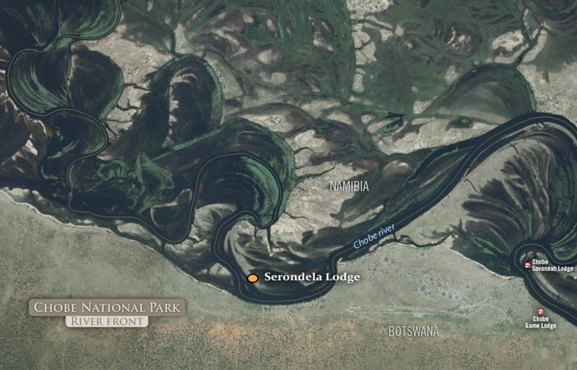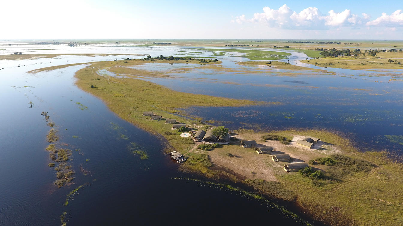The Helicopter View of the LodgeThe lodge is on an island during the annual Chobe floods
