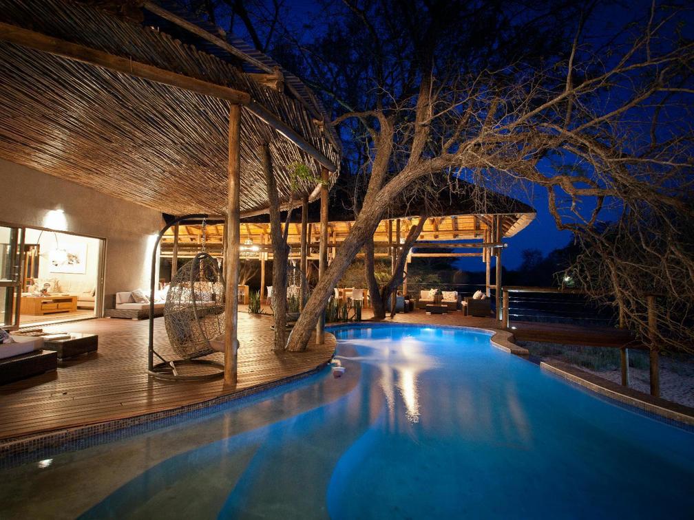 A beautifully lit pool at night, creating a serene and inviting atmosphere for evening relaxation.