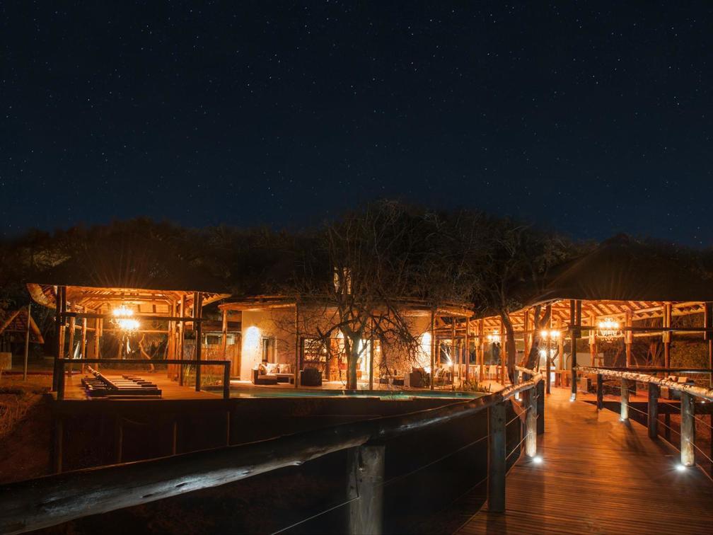 The lodge beautifully illuminated at night, creating a warm and welcoming ambiance.