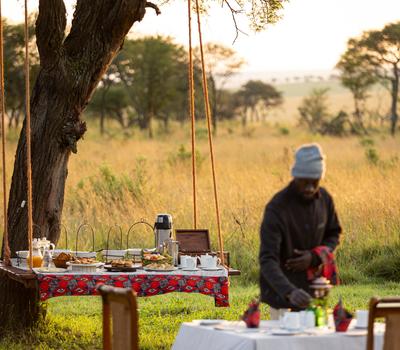 The dining area look out to the plain ahead - and sunrise across the Nyamalumbwa Hills
