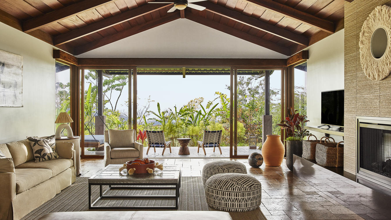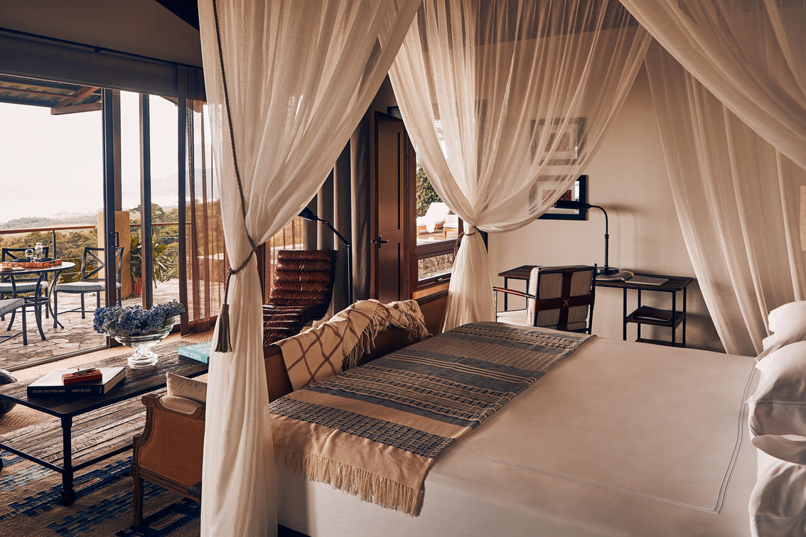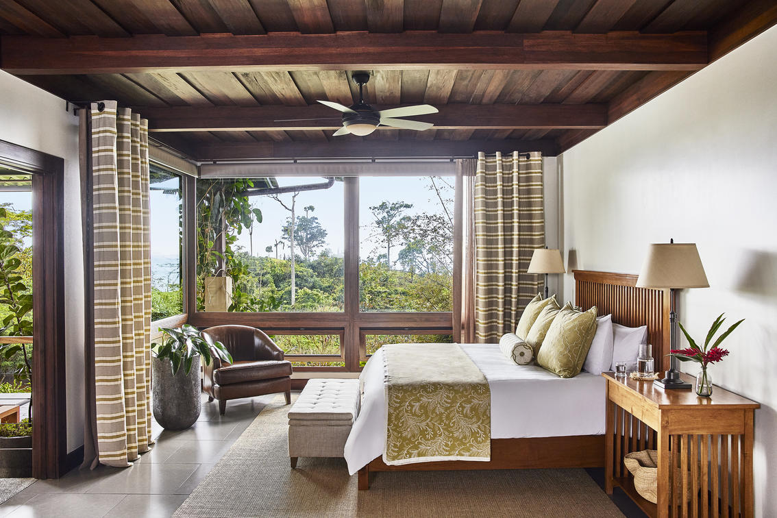 After a day of adventure, take in the spectacular sight of rolling hills that seem to unfurl just off your private terrace. Whether from the heated plunge pool or oversized swinging bed, guests are encouraged to breathe in their surroundings and disconnect from the frenzy of modern life. Within your Casona, expansive picture windows surround you — from the comfortable living room to spacious bathroom with deep-soak tub. The bedroom, featuring a canopied bed, vaulted ceiling and floor-to-ceiling windows, turn the focus to the uninterrupted valley views. Handpicked Costa Rican artwork and accessories lend a local touch to luxurious furnishings in rich fabrics, leather and wood.