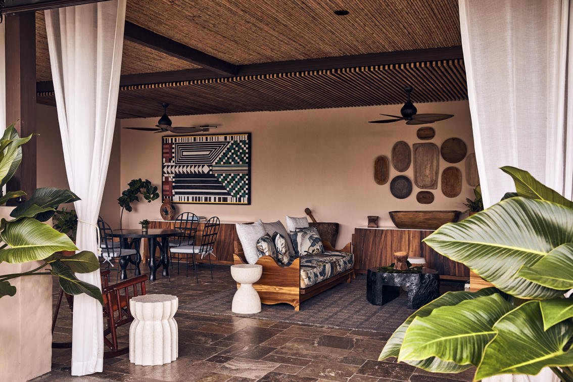 The palapa bar serves beer, wine, and simple, fresh fruit juice-driven, aperitif-style cocktails for chaise lounge imbibing.