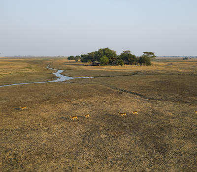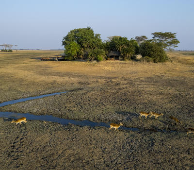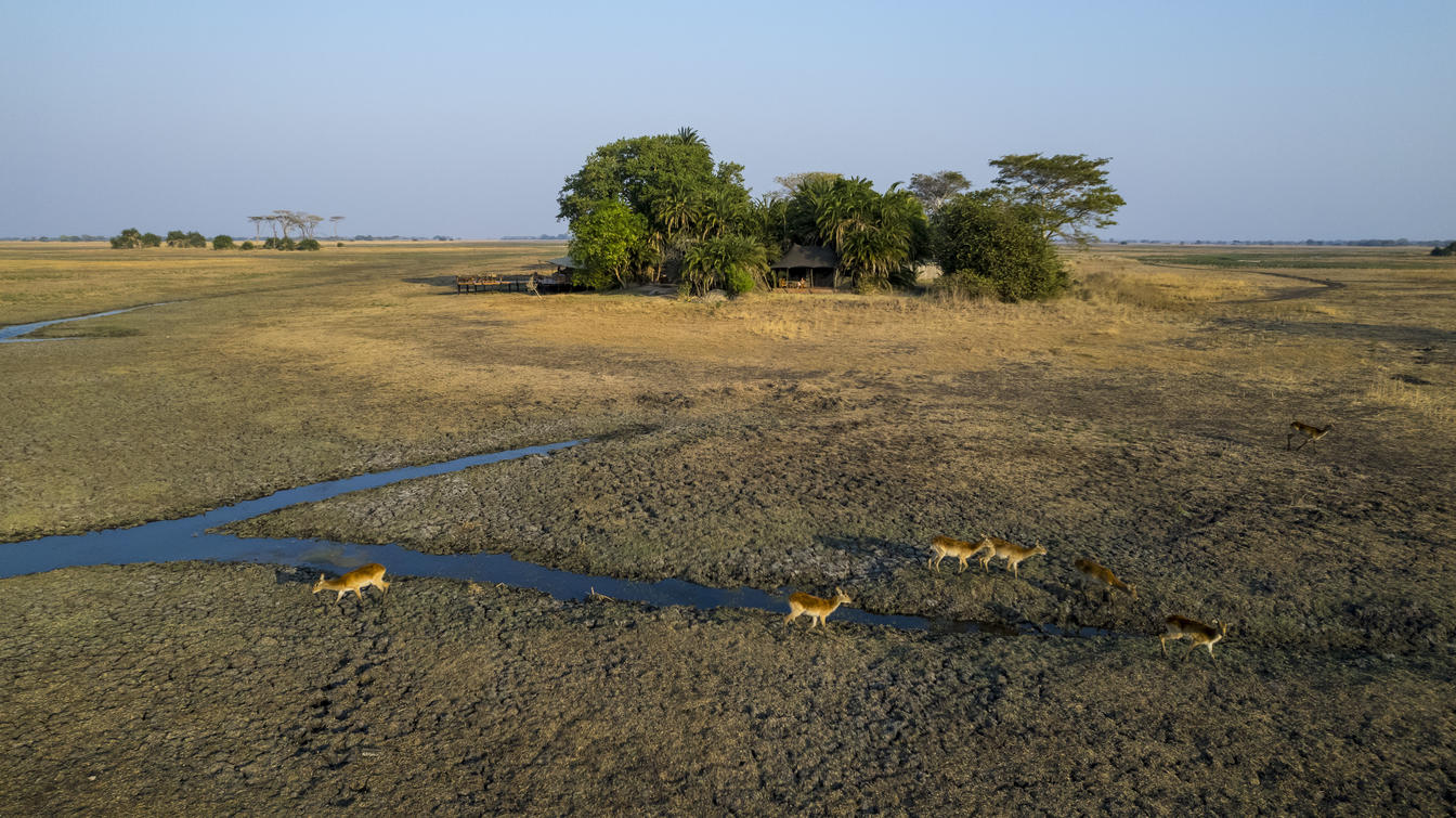 Aerial view of the Busanga Plains Camp.