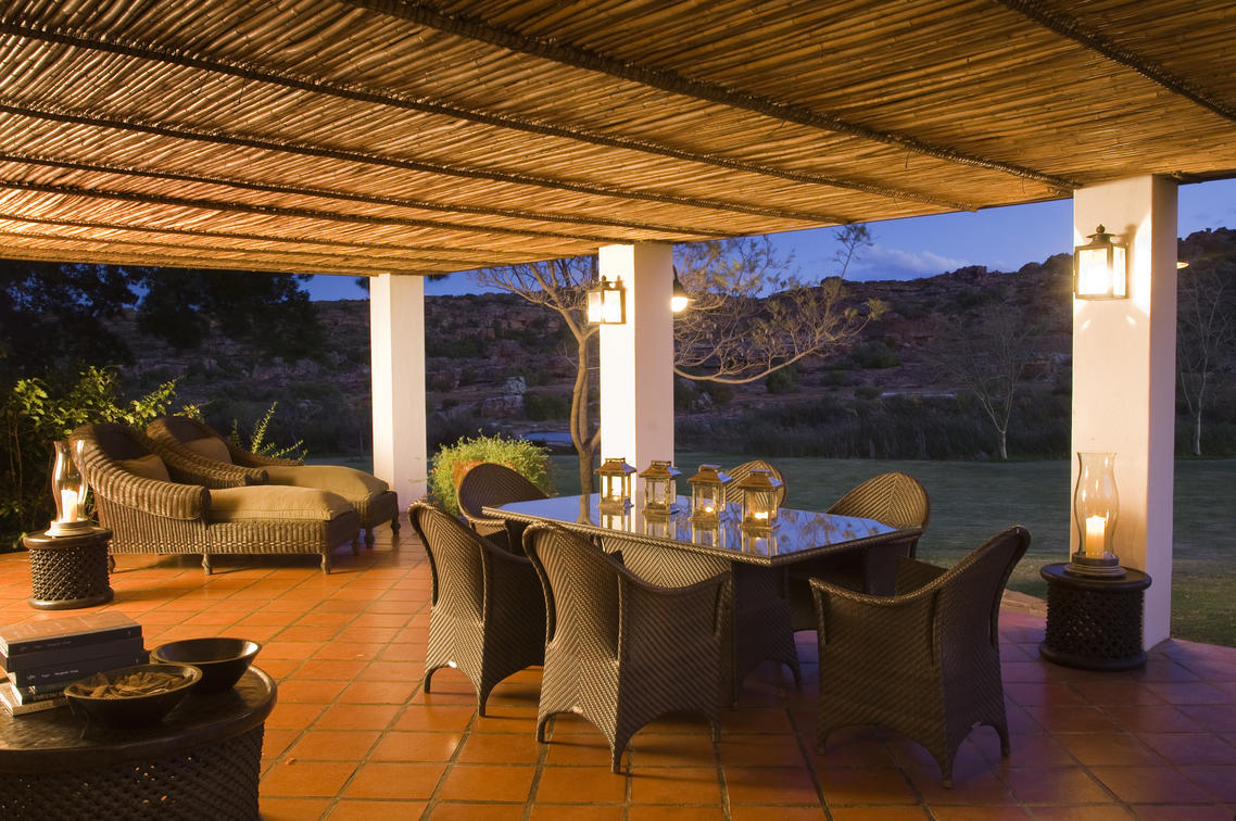 (‘To feast’ in the ancient language of the Bushman), has stone walls enclosing an elegant lounge with twin fireplaces overlooking sweeping lawns and the Boontjies river. The ideal choice for mouth watering high teas, hot cooked breakfasts and outdoor celebration dinners. Complemented by our fine wines, guests have an unequivocal taste celebration of the Cederberg.