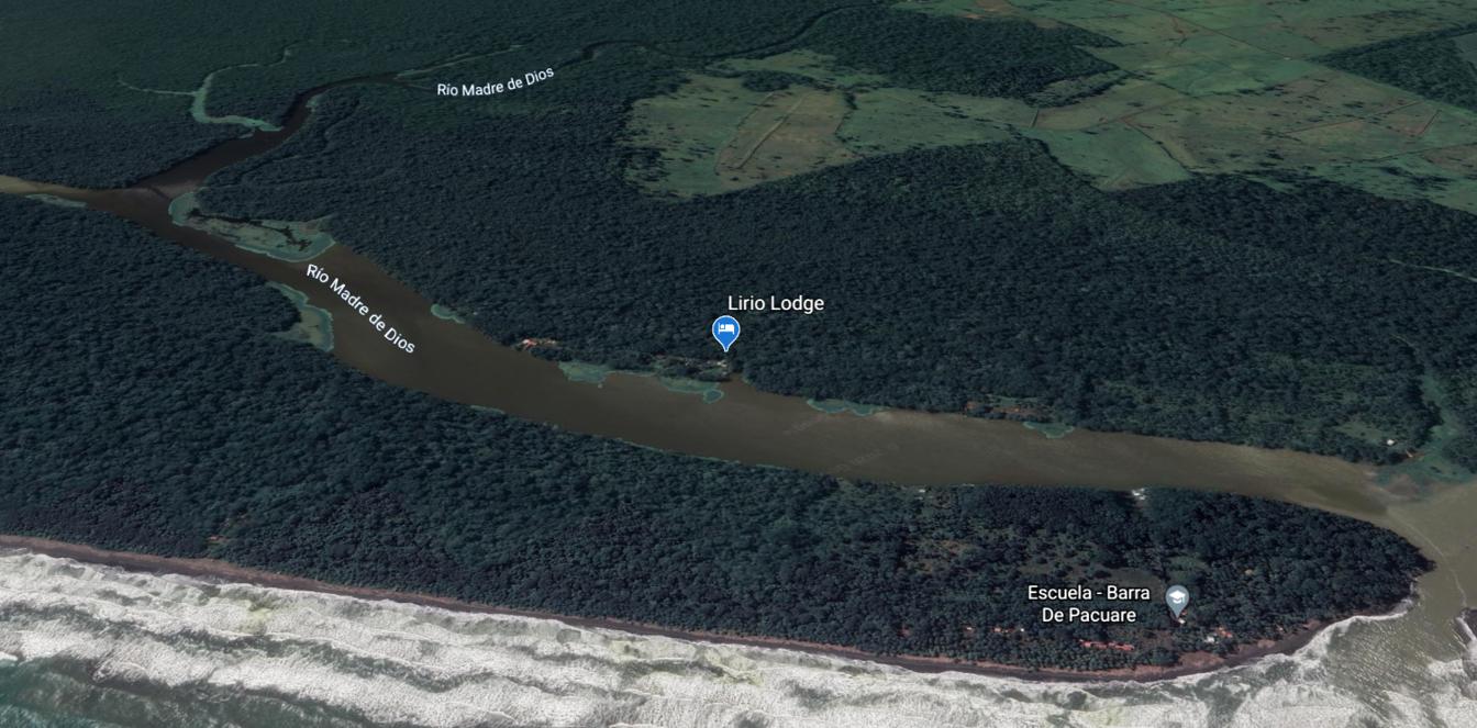 Lirio Lodge Location at Pacuare River mouth on Tortuguero Canals