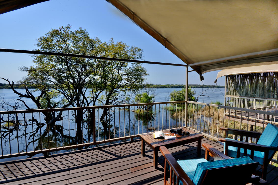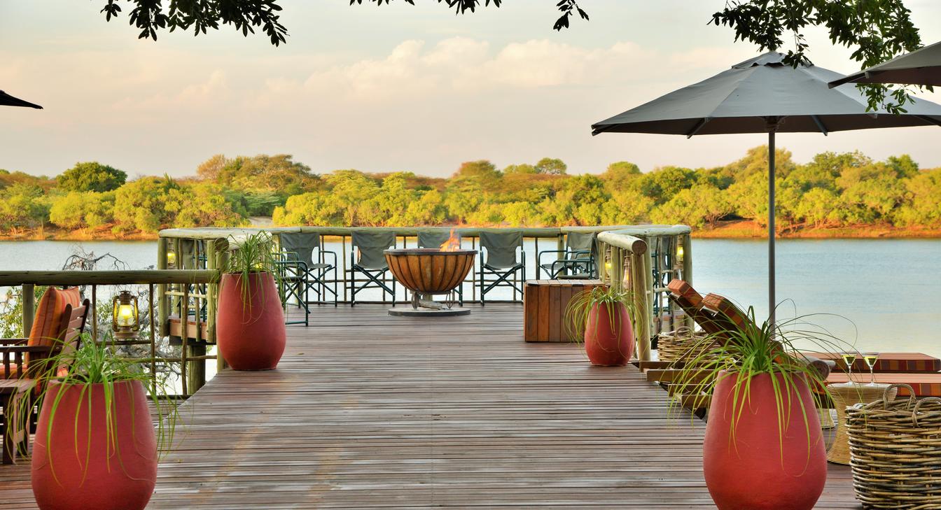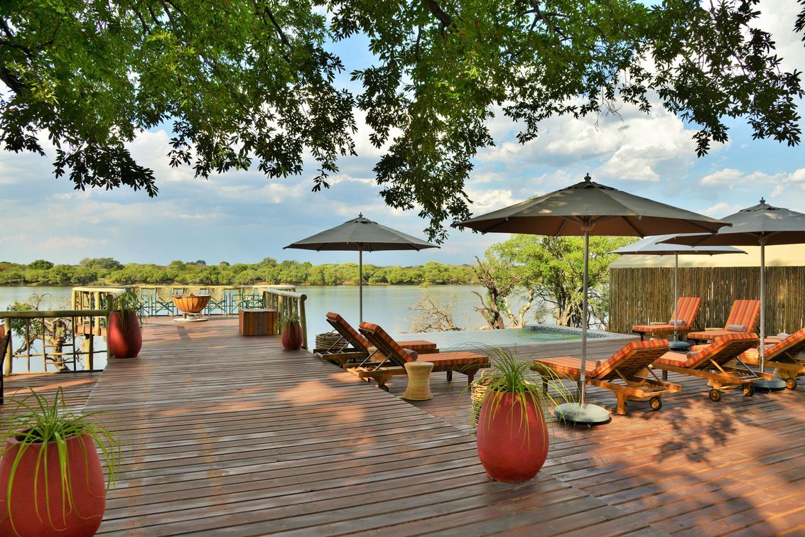 The rim flow pool and the comfortable pool loungers provide a wonderful view of the Chobe River