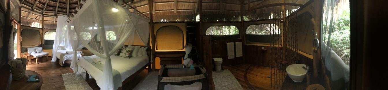 Room with a view - side panels rolled up to enjoy natural surroundings.