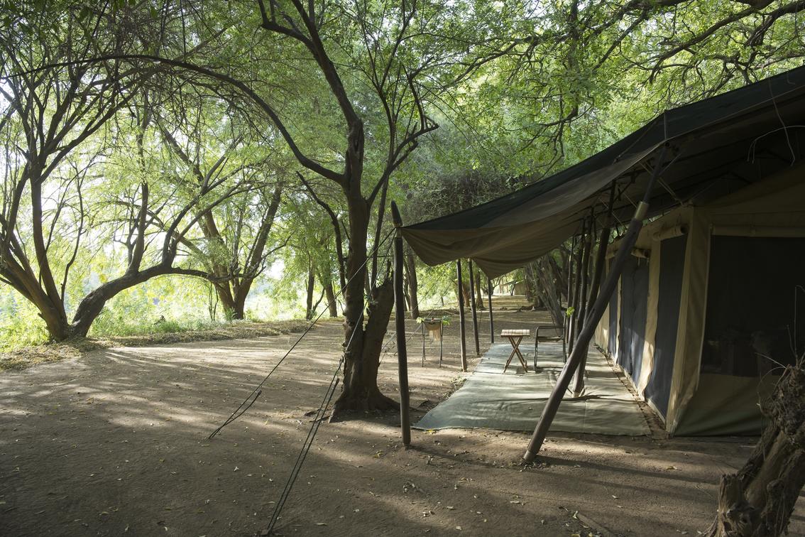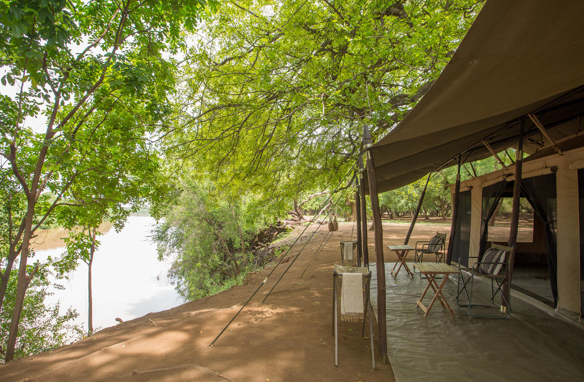 the 7 tents are set back from the edge of the Omo River in deep shade