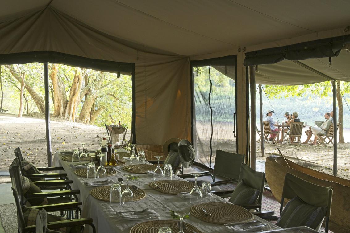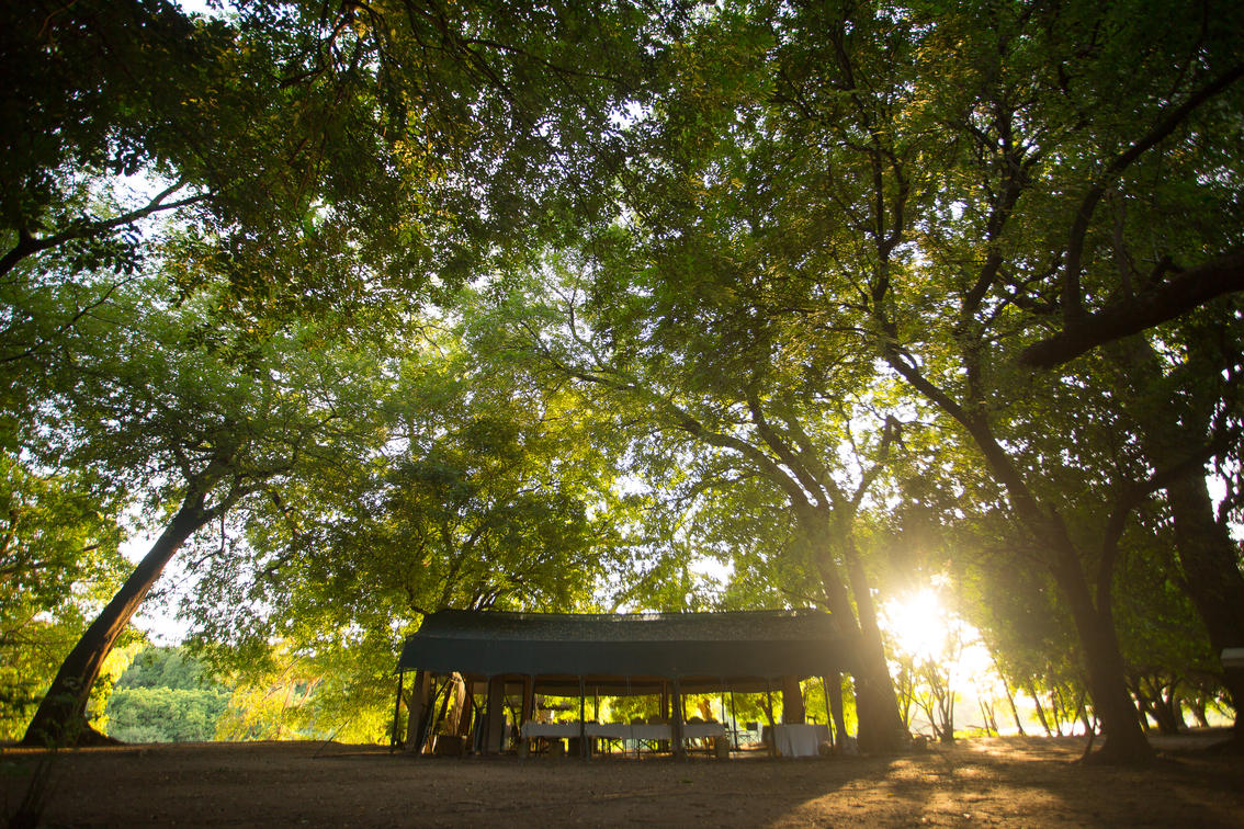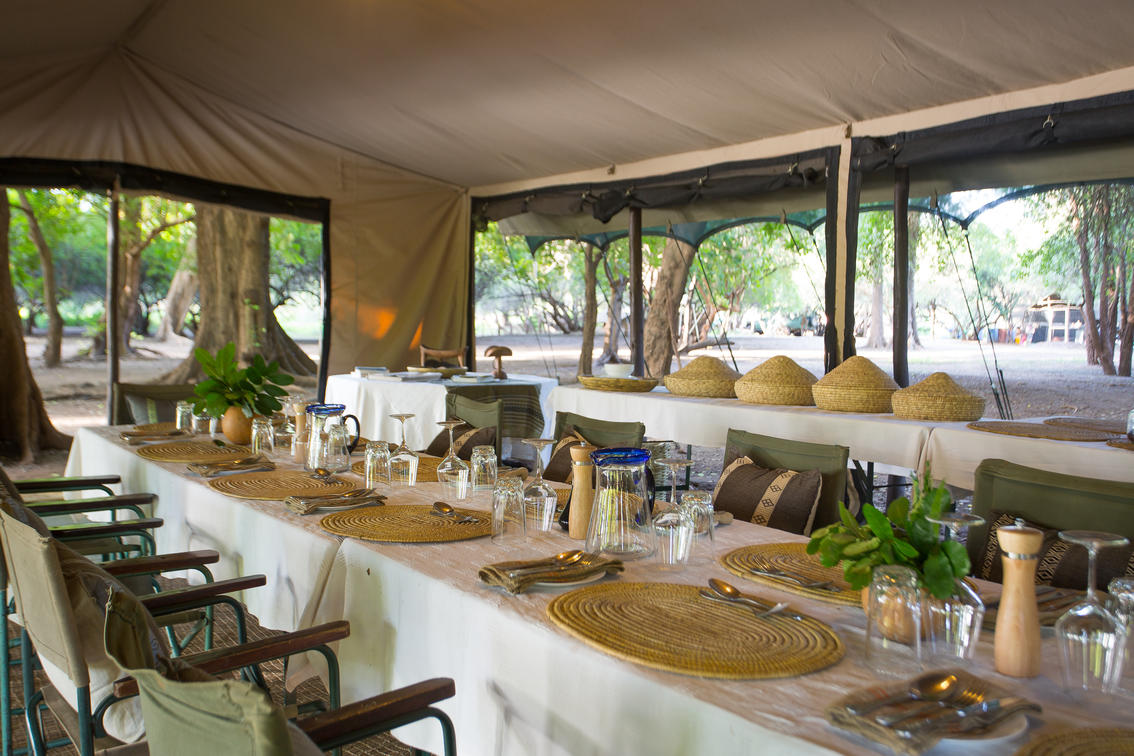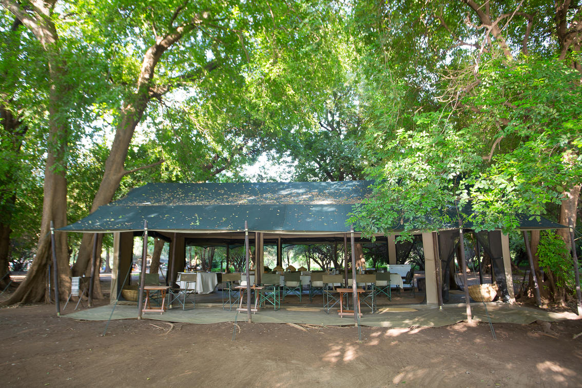 the main area dining and lounge is set in deep shade just back from the banks of the Omo River
