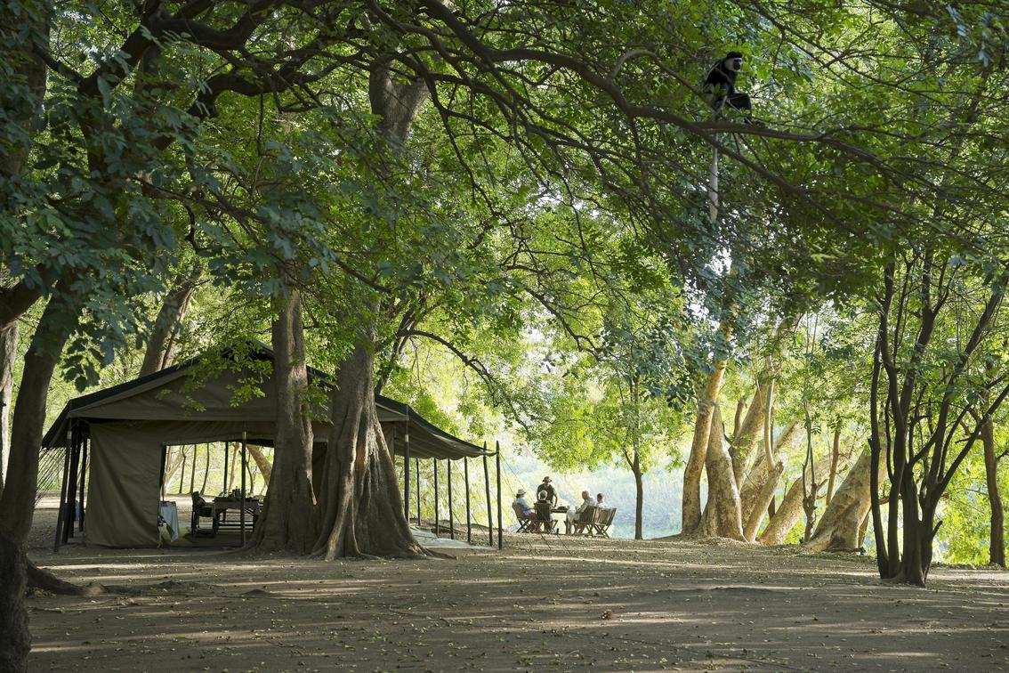 main area relaxation (with observant colobus) on banks of Omo River
