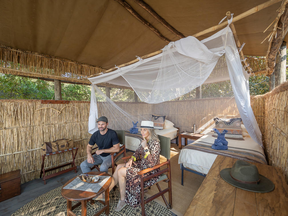 In the shade of the thatch roof or under the stars, dining at Island Bush Camp is always a grand affair