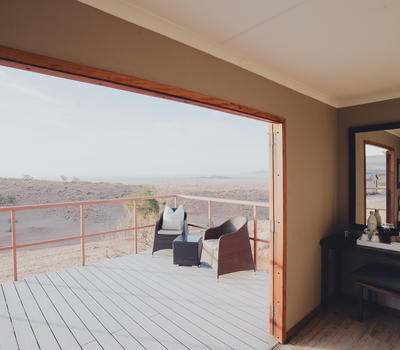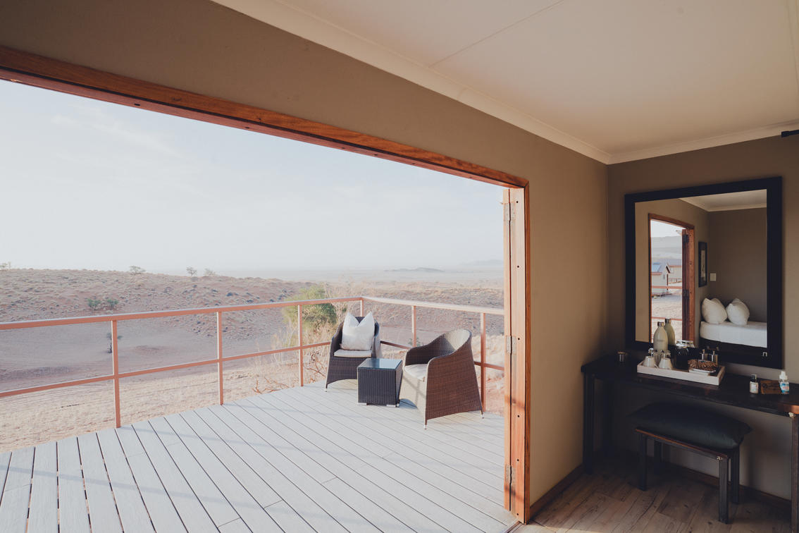 overlooking the desert from the Namib Dune Star Camp's terrace