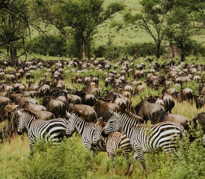 The Great Migration is made up of numerous species, including wildebeest and zebra