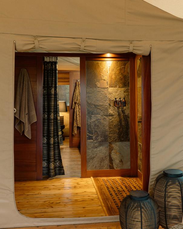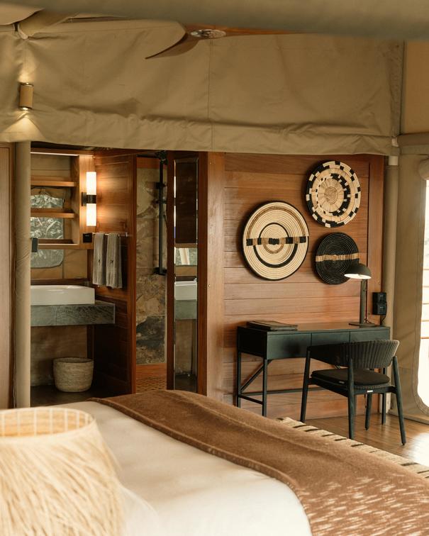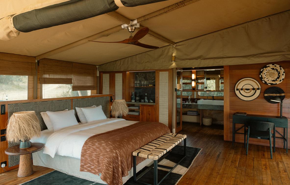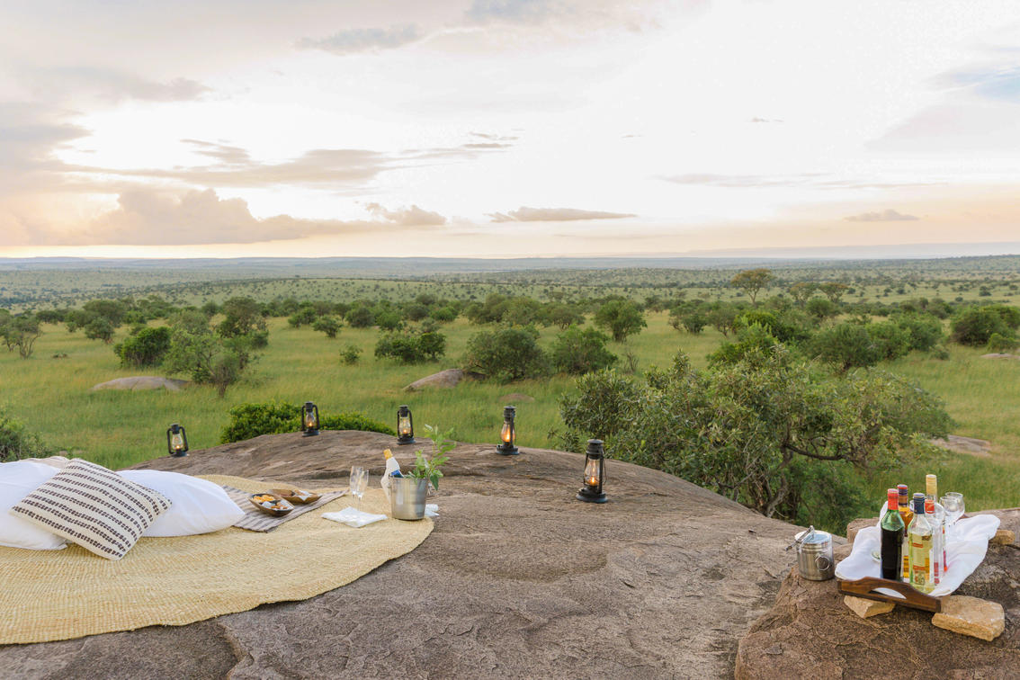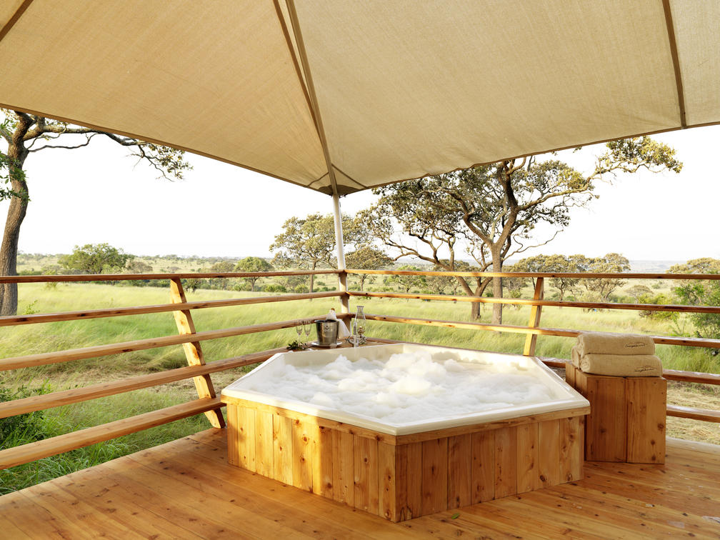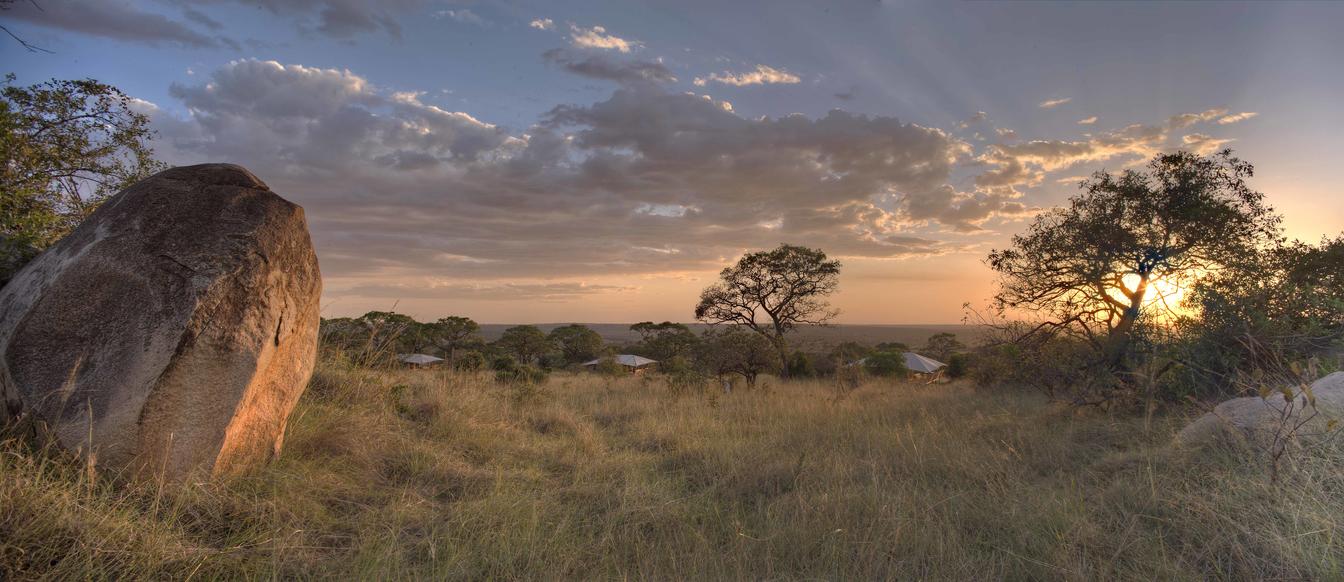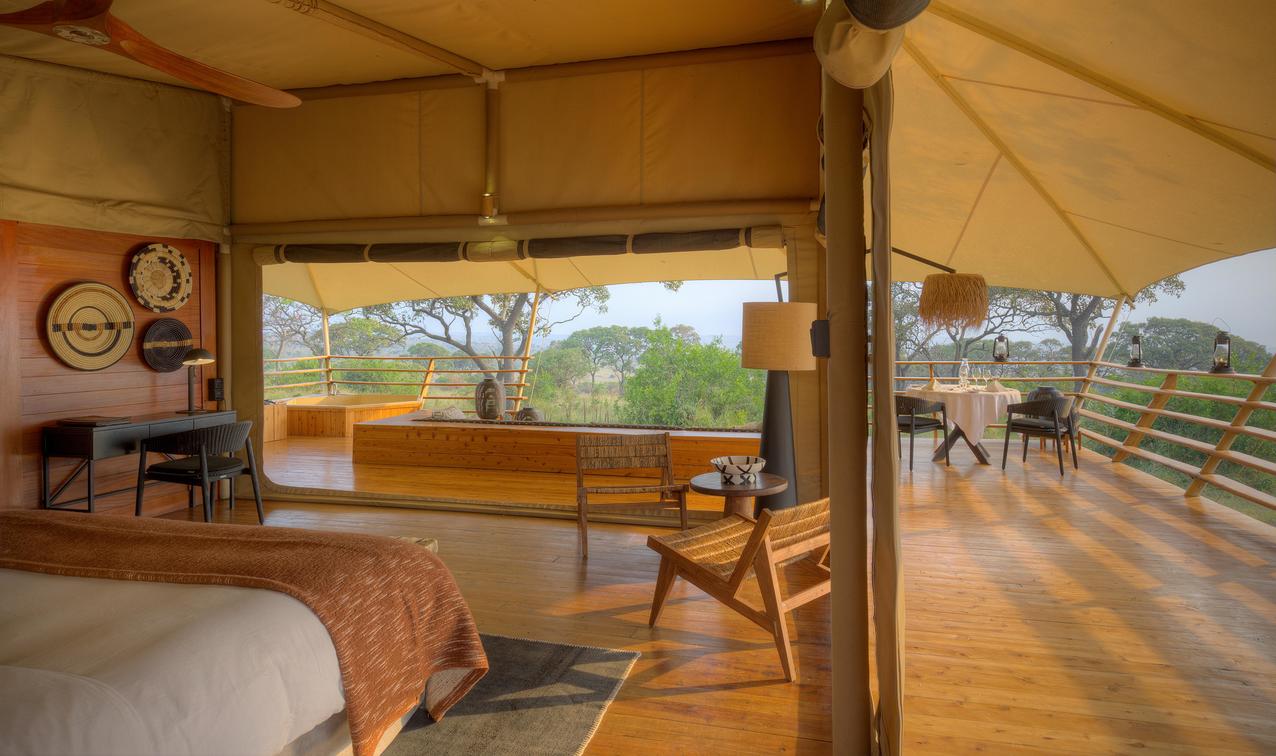 the tent opens up on two sides and has awe inspiring views of the Serengeti below