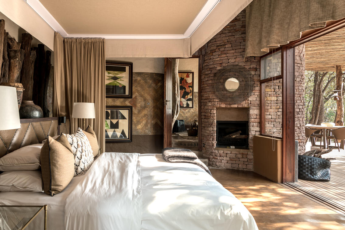 • Singita Pamushana Lodge Lounge & Fireplace
