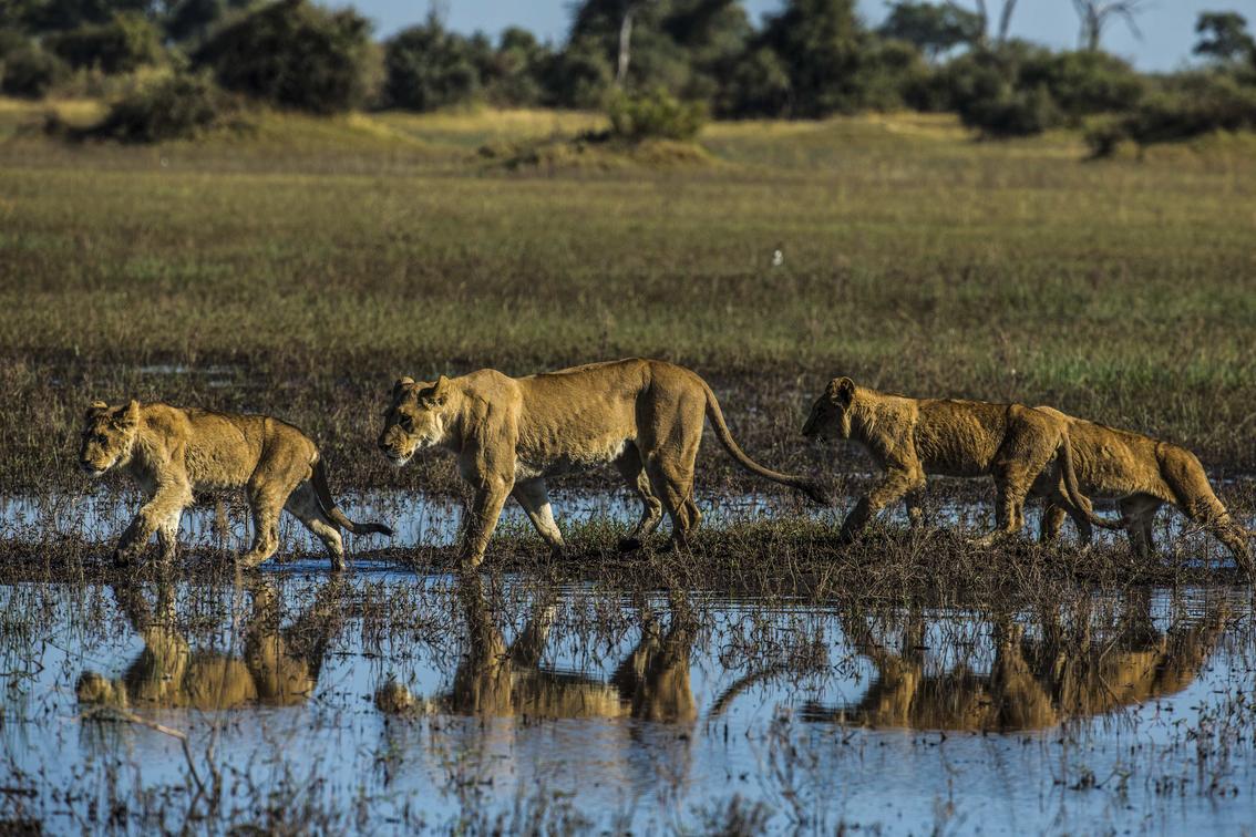 Lions walking along the Selinda Spillway