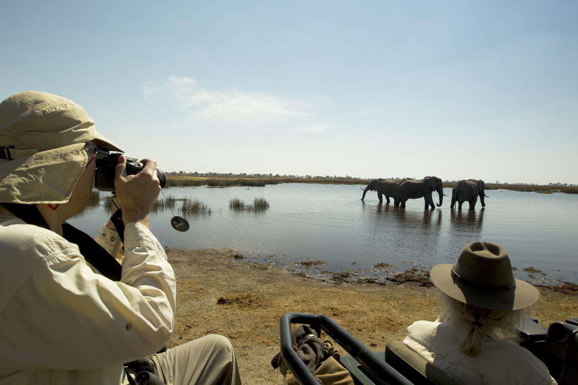 Elephants drinking from the Selinda Spillway
