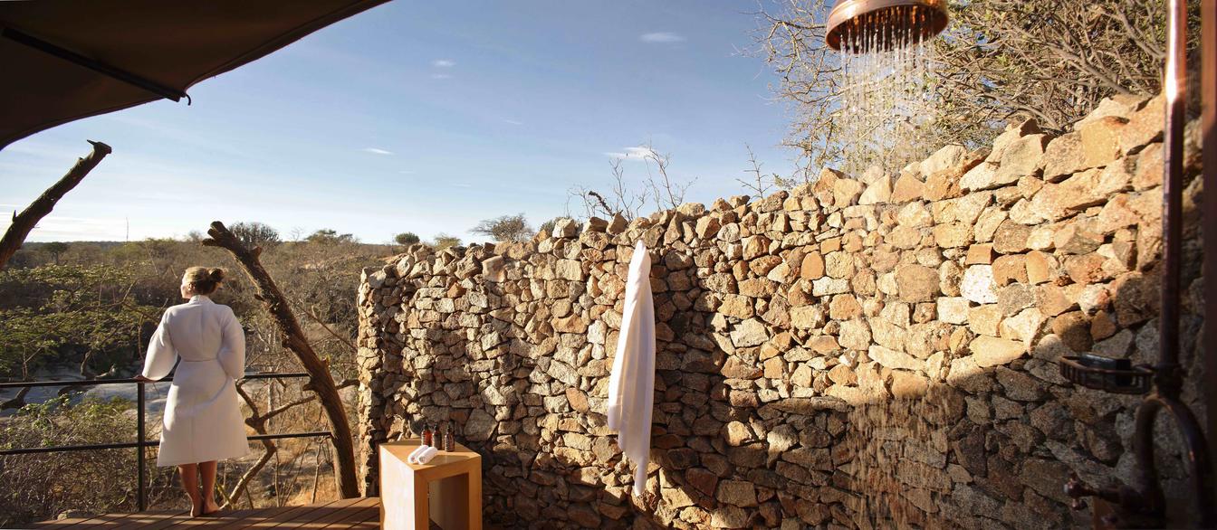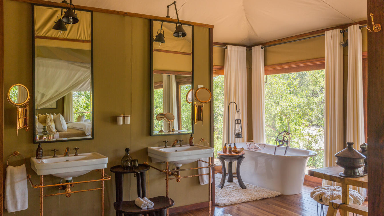 His and hers vanities in the spacious bathroom at Mwiba Lodge