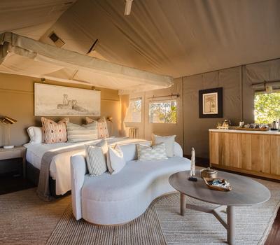 Drawing inspiration from Botswana’s natural beauty, Chitabe Lediba’s new décor echoes the harmony of the camp’s wilderness surrounds.