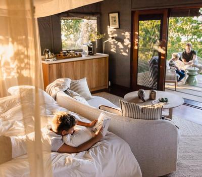 The intimate guest tents are immersed in nature.