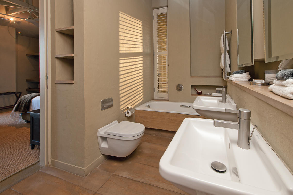 Double basins and bathroom oentrance to the right with a semi private quart yard leading from Fynbos executive suite