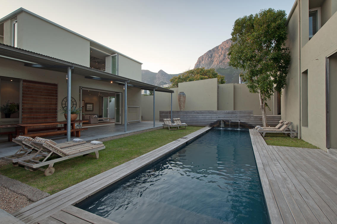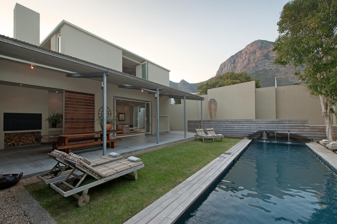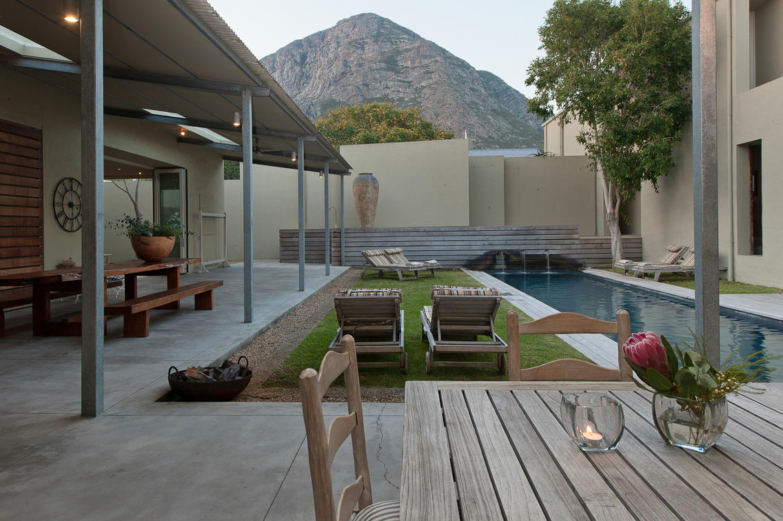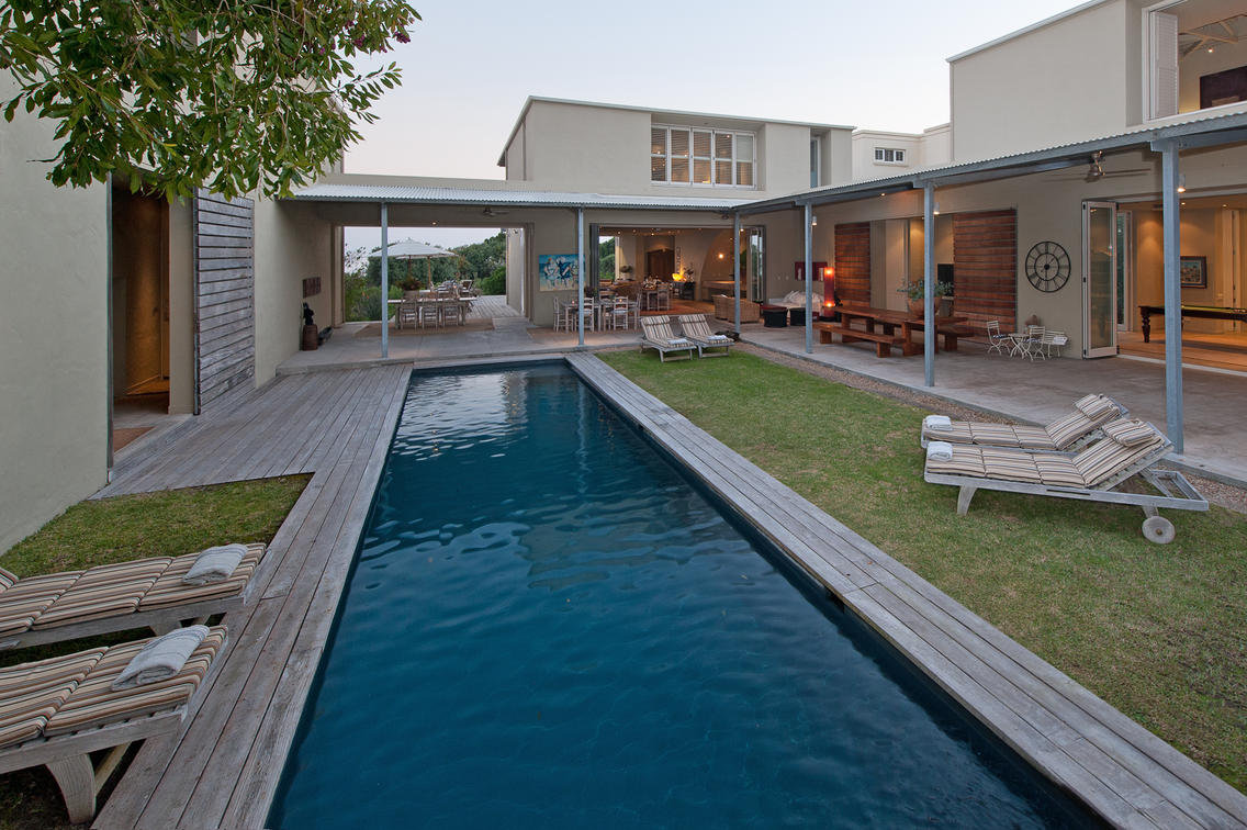 View from entrance overlooking the pool and living areas of Mosselberg