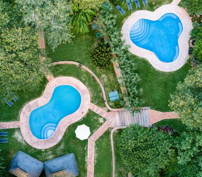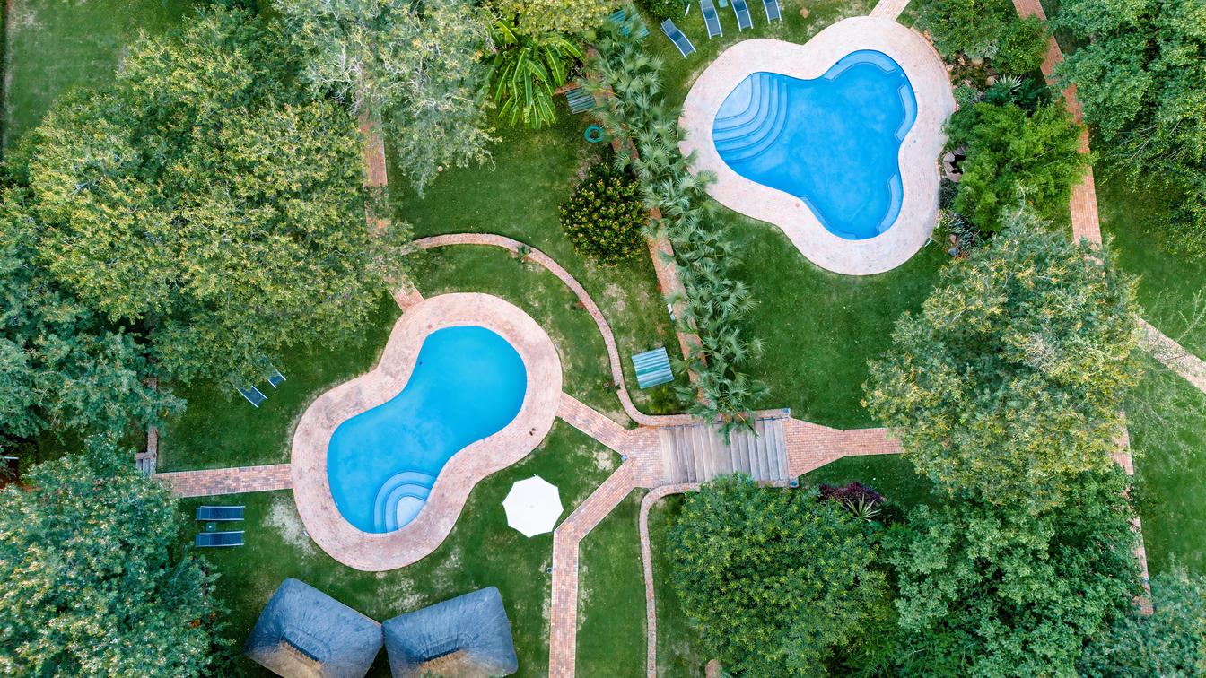 One of two pools on the property.