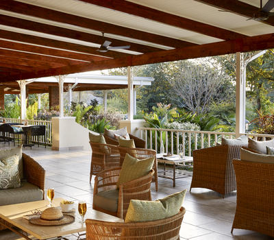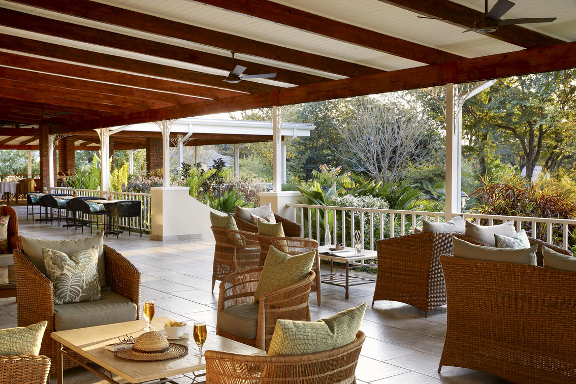 The perfect place to relax, take in the view of the gardens, and enjoy a coffee or a drink.