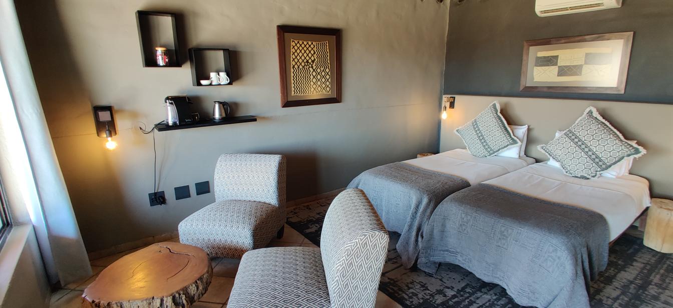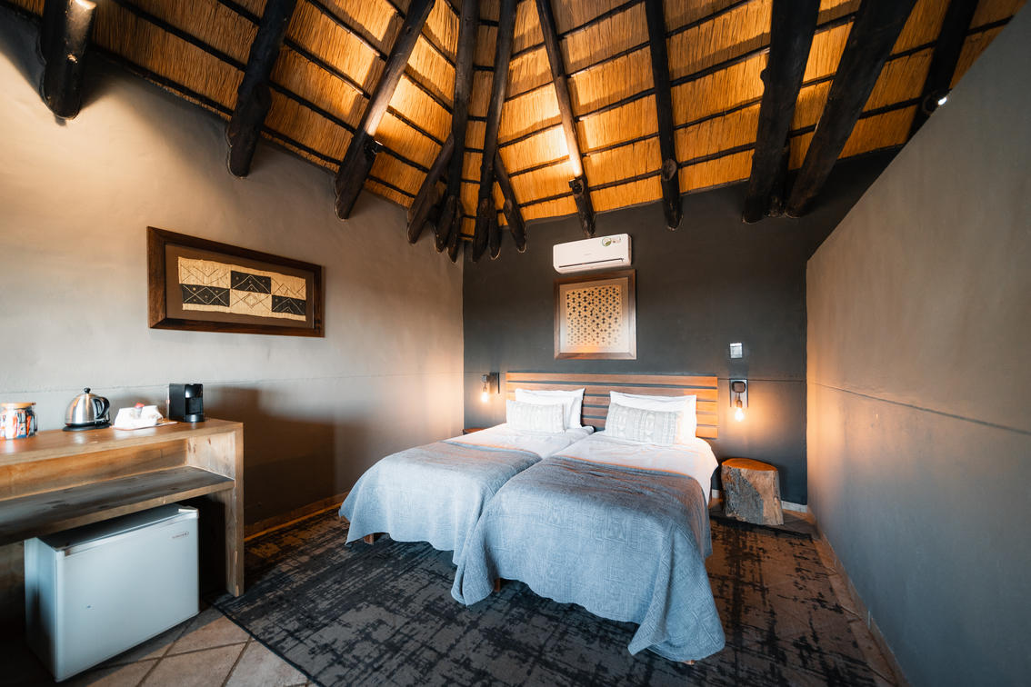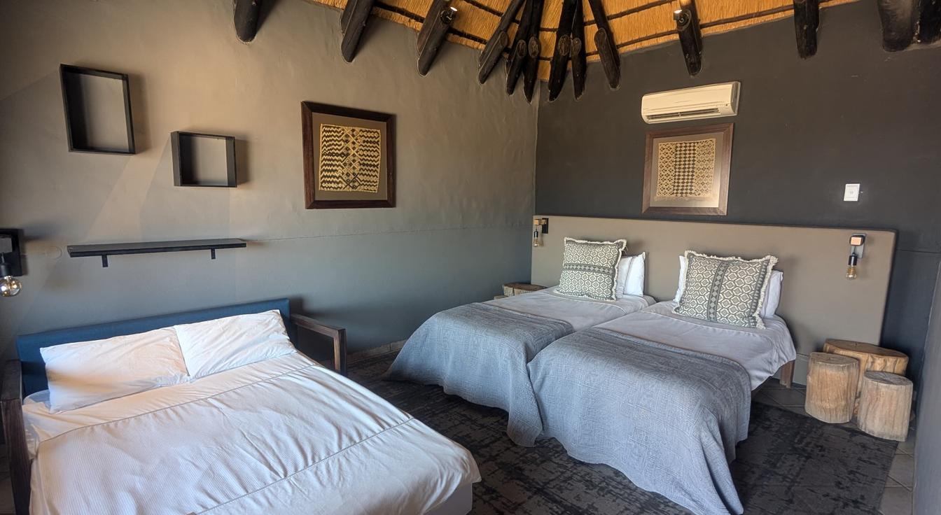 Thatched chalet with 2 adjacent twin rooms