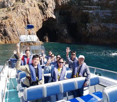 Happy clients admiring the caves and coves