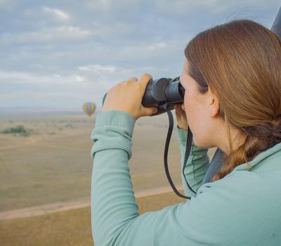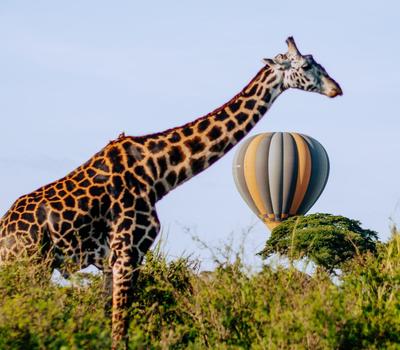 The balloon rises gently, revealing wide, open views of the plains and the wildlife below. As the landscape unfolds beneath, the safari adventure has only just begun.