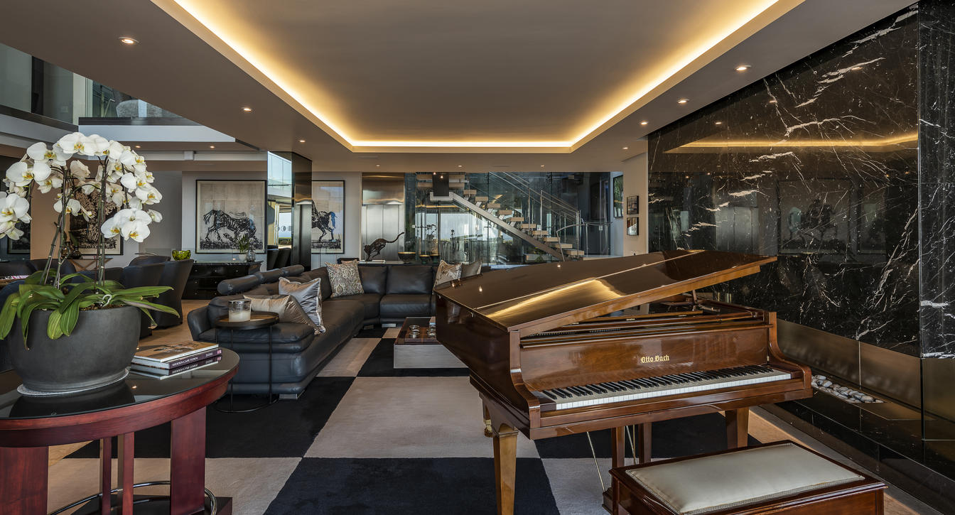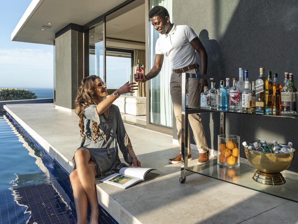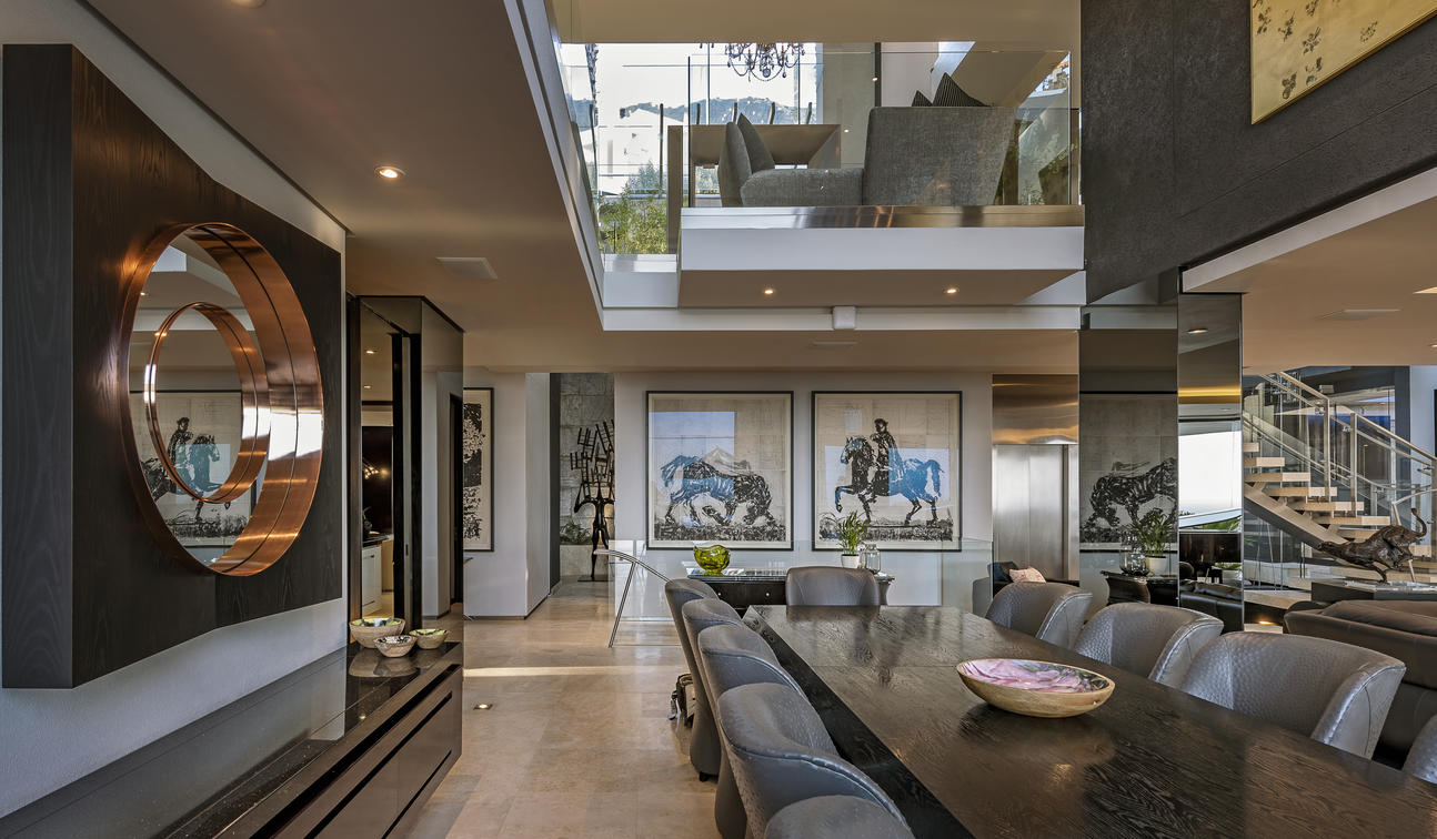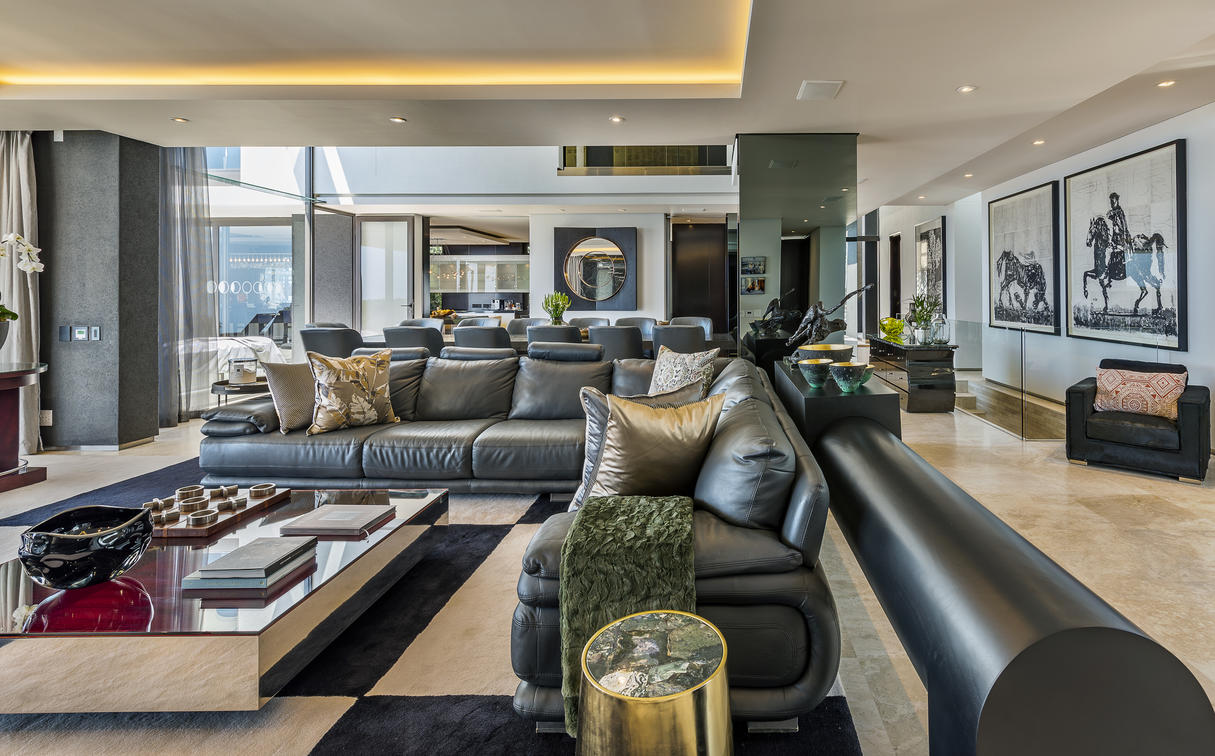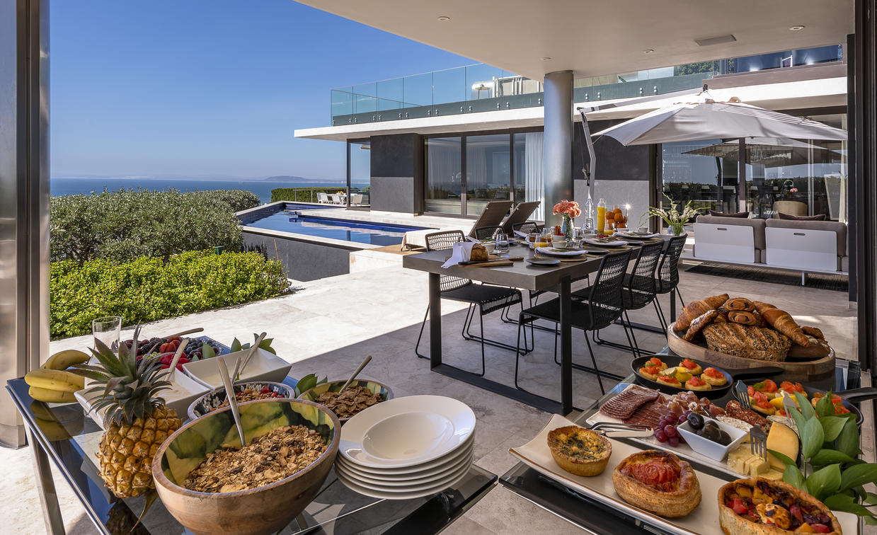 This is the main entertainment lounge set with 2 TV's, a bar, a north facing braai and alongside the pool.