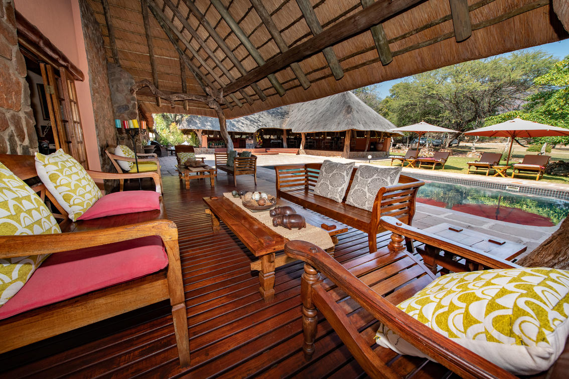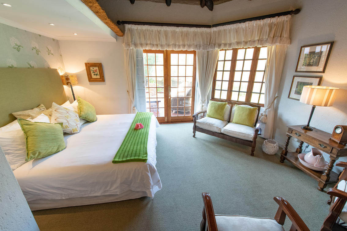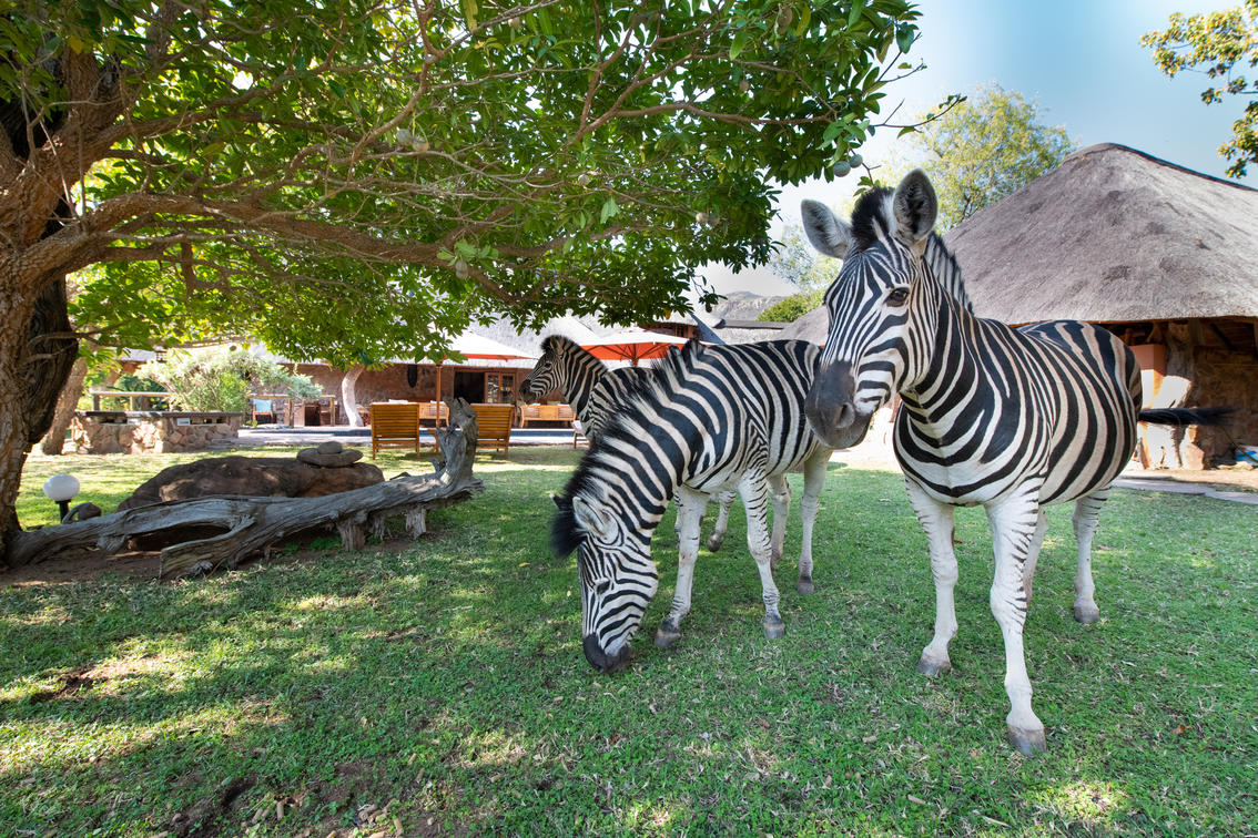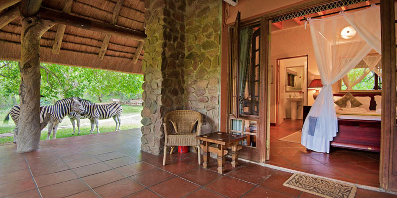 Each room leads out onto the tranquil gardens where zebra, wildebeest and other wild game wander by.