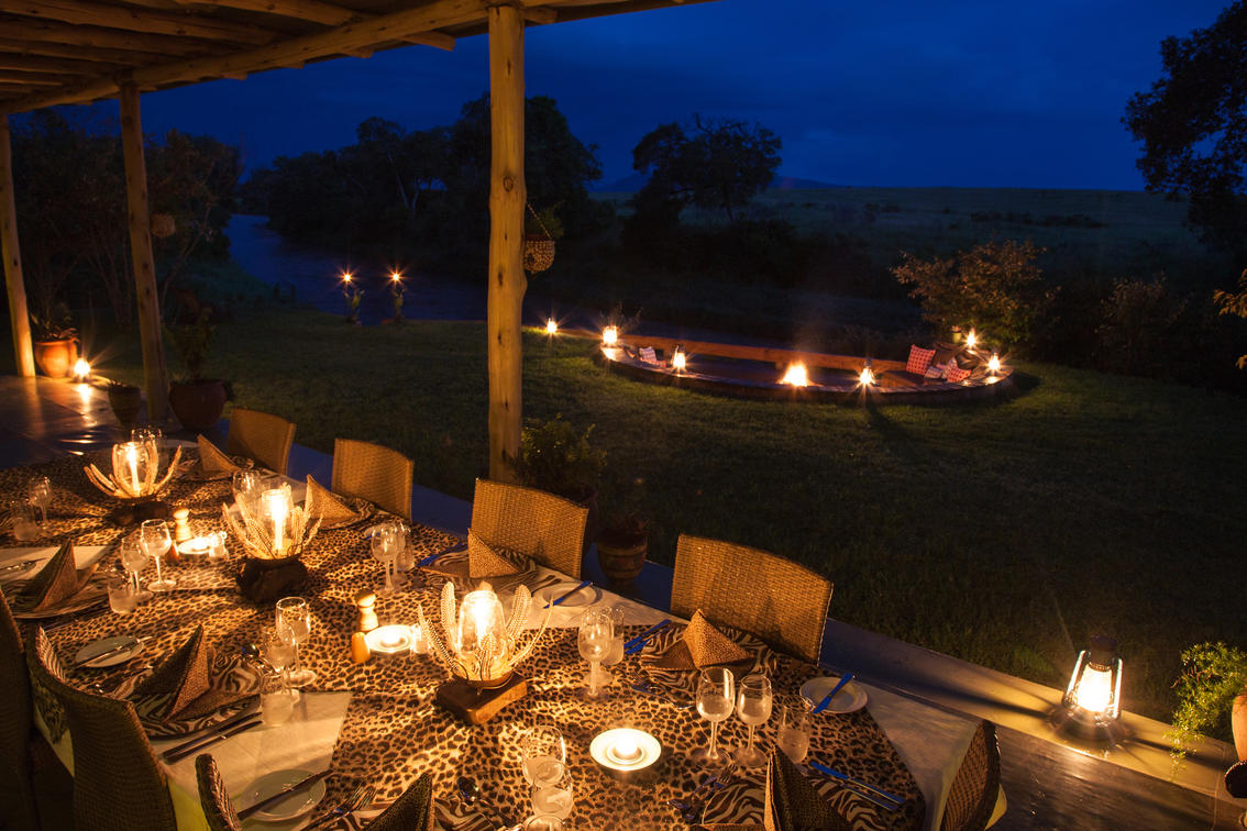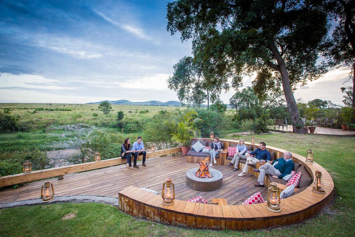 Evening campfire overlooking the vast Masai Mara plains