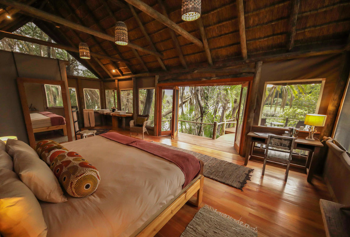 Main Area Fire Place and Deck Overlooking the Okavango Panhandle