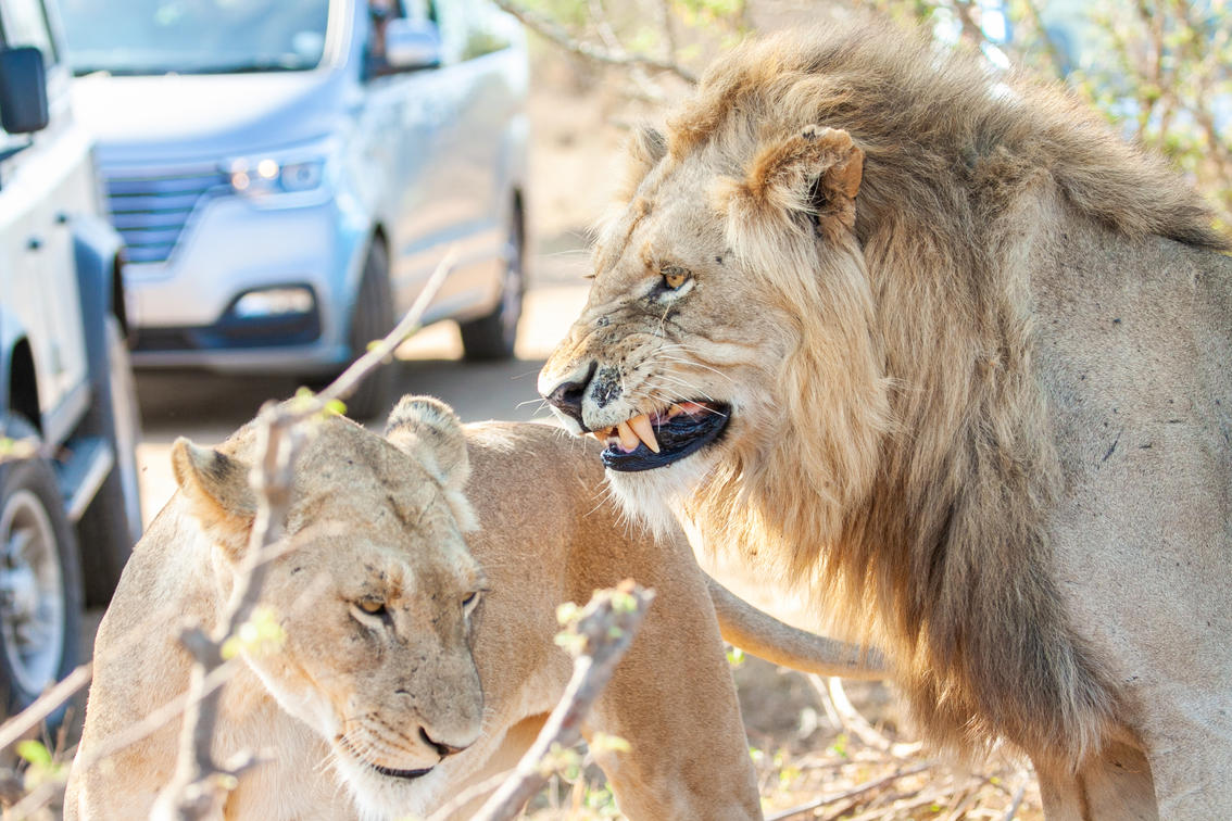 Lion in- front of Safari Vehicle