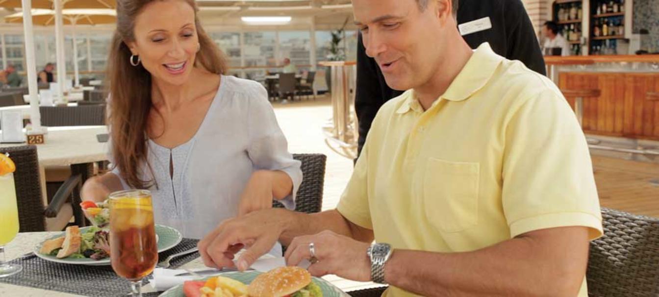 The ultimate come-as-you-are dining venue, the Pool Grill couldn’t be more casual. Walk over straight from sunbathing or swimming in the pool. Drop by before or after a shore excursion or enjoy a snack between activities.
