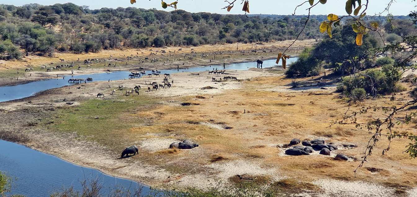 Meno a Kwena - game viewing from the camp over the Boteti River