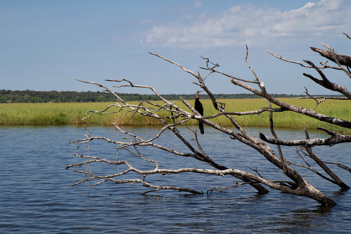 Bird purched on branch in the Chobe river