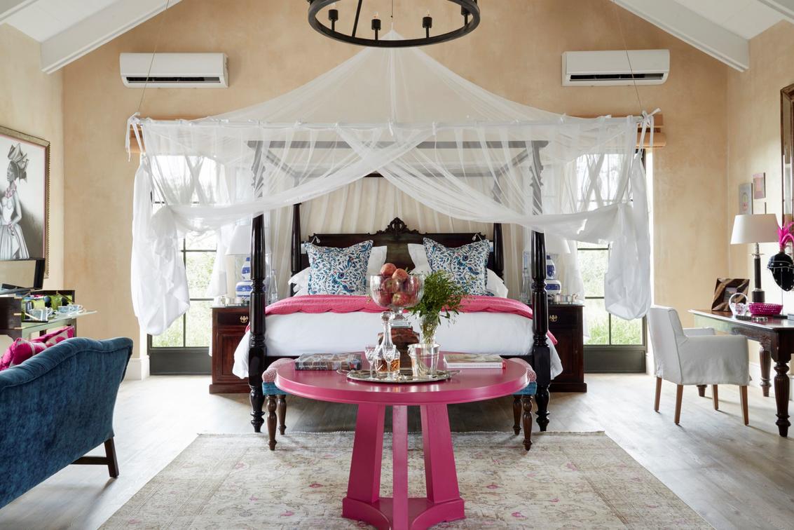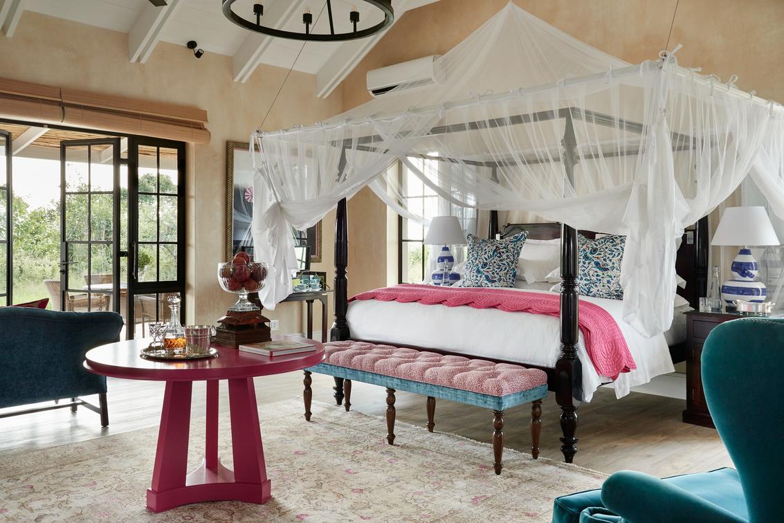 Farmstead at Royal Malewane - Luxury Farm SuiteCredit: The Royal PortfolioColourful designs in a Luxury Farm Suite Bedroom.