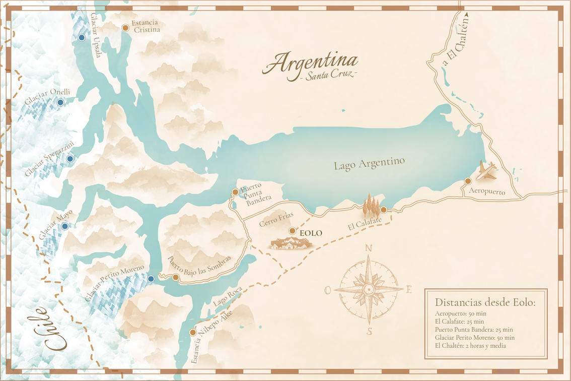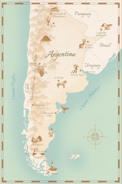 Map of Argentina. El Calafate is located in the Southwest of the country in the province of Santa Cruz