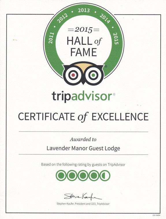 TRIPADVISOR CERTIFICATE OF EXCELLENCE