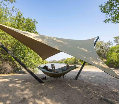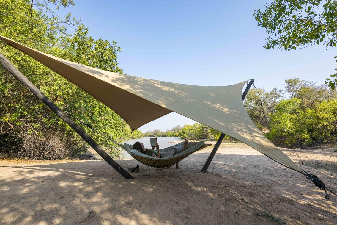 The white sand just to the side of the camp allows for a relaxing afternoon on the large hammock.