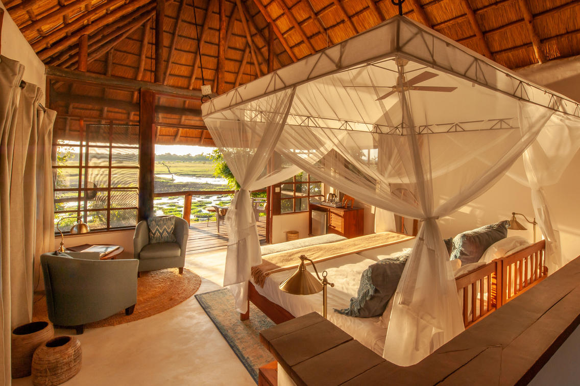 Kafunta River Lodge - Luxury suite main sleeping area and deck