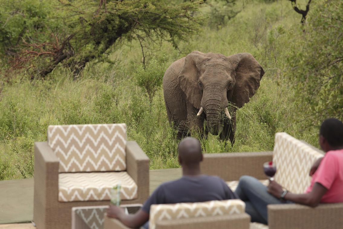 Our elevated veranda keeps our clients safe whilst the elephants enjoy the grass!